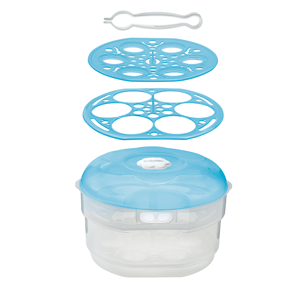 Diseñamos nuestro esterilizador para facilitarte la higiene diaria de los biberones de tu bebé: la esterilización a vapor es un método natural y seguro, que mata el 99.9% de los gérmenes sin usar químicos. Es muy simple, rápido y seguro: sólo agregá agua y está listo para esterilizar en el microondas. Podés esterilizar hasta 6 biberones a la vez, gracias a su gran capacidad de almacenamiento.