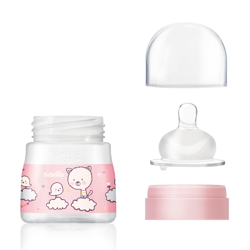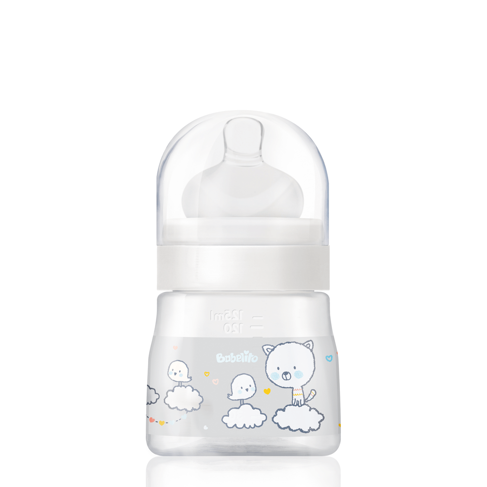 Nuevo biberón de boca ancha 125ml de Babelito! Su exclusiva tetina SuperSoft posee válvula de aire en la base: el aire se direcciona hacia la válvula de ventilación e ingresa al biberón, provocando una salida constante de alimento, minimizando la ingesta de aire y reduciendo así, el riesgo de cólicos e hipo.