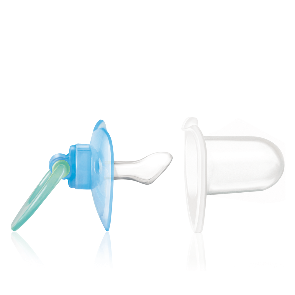 Su tetina anatómica de silicona suave y flexible que se adapta fácilmente al paladar del bebé. Incluye un práctico capuchón que te permite mantener la tetina siempre limpia. Posee perforaciones en su escudo que facilitan la aireación y ofrecen mayor seguridad. Disponible en tamaños 1, 2 y 3.