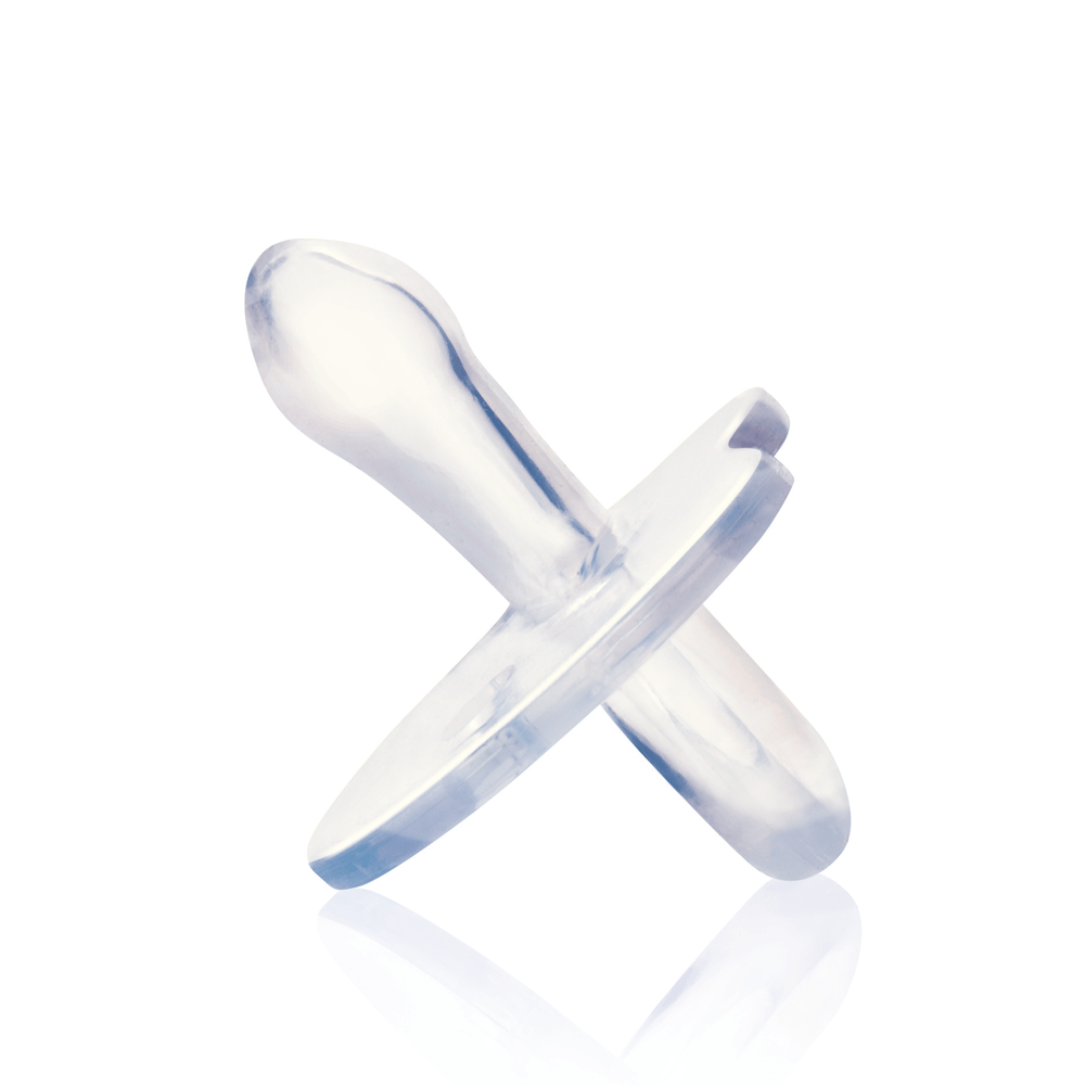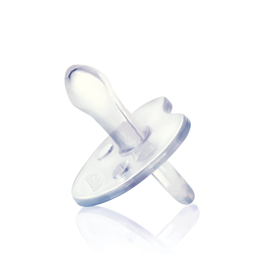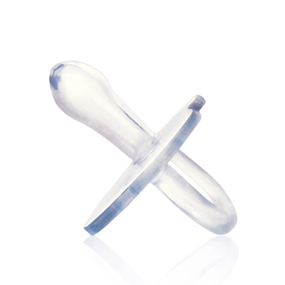 Nuestro chupete todo-silicona con tetina simétrica es suave y muy blando, especial para dormir sin dañar la carita de tu bebé.