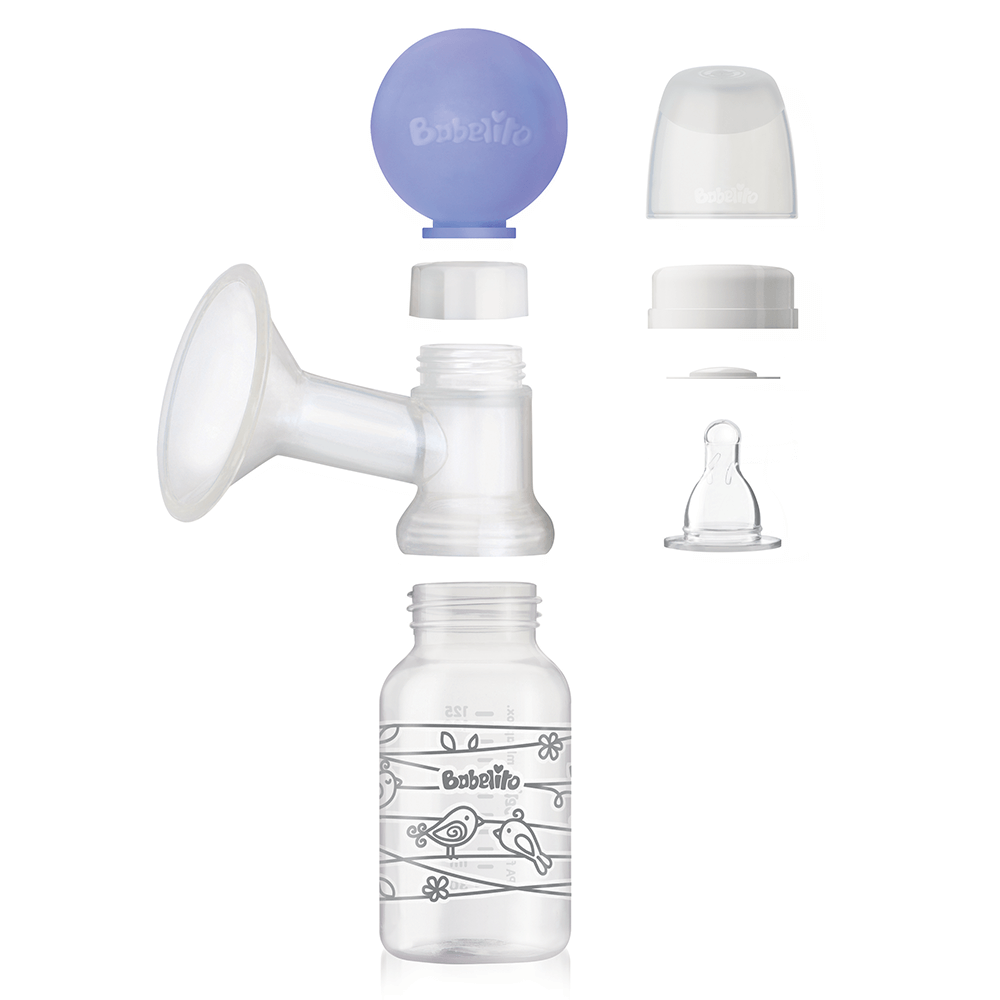 Nuestro succionador manual Babelito es el complemento ideal para ayudarte a que tu bebé siempre pueda tomar leche materna, continuando con los beneficios de la lactancia materna de manera segura y natural. El efecto de succión imita la succión del bebé. Es fácil de armar. Sus partes plásticas se pueden esterilizar (A excepción de la pera de goma). Es muy fácil de esterilizar. Incluye un conjunto de capuchón, tetina y rosca para que puedas usarlo también como biberón. Sin EA, BPA ni BPS.